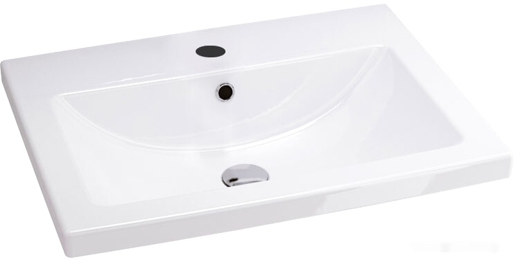 Умывальник врезной, на столешницу, на тумбу, ширина 600 мм, длина 450 мм, форма: прямоугольная, санитарная керамика, отверстие под смеситель, отверстие под перелив.