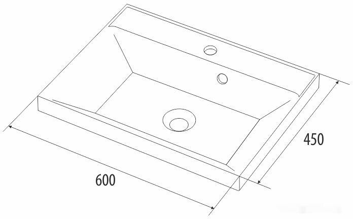 Умывальник на тумбу, ширина 600 мм, длина 450 мм, форма: прямоугольная, санитарная керамика, отверстие под смеситель, отверстие под перелив.