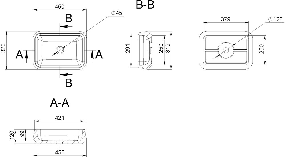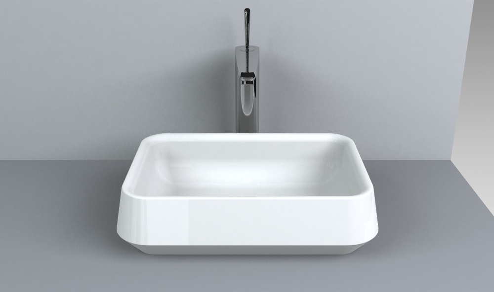 Ширина 450 мм, длина 320 мм, форма: прямоугольная, искусственный мрамор.