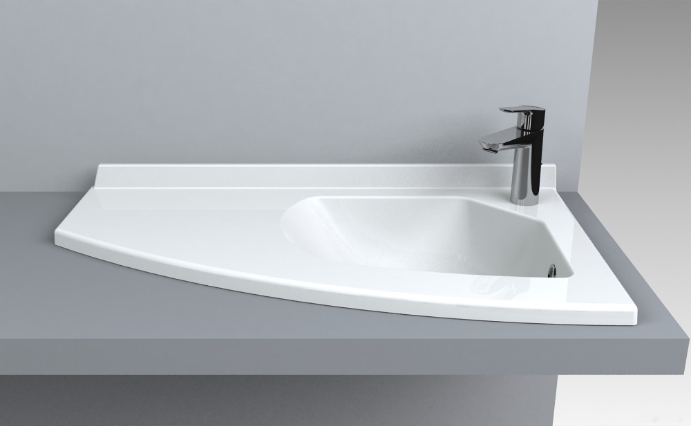 Умывальник врезной, на столешницу, ширина 798 мм, длина 495 мм, искусственный мрамор, отверстие под смеситель, отверстие под перелив.