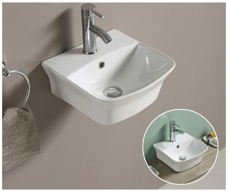 Умывальник на кронштейны, на столешницу, на тумбу, ширина 350 мм, длина 350 мм, форма: нестандартная, санитарная керамика, отверстие под смеситель, отверстие под перелив.
