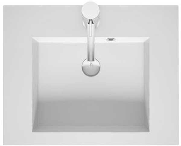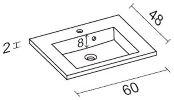 Умывальник на тумбу, ширина 600 мм, длина 480 мм, форма: прямоугольная, отверстие под смеситель, отверстие под перелив.