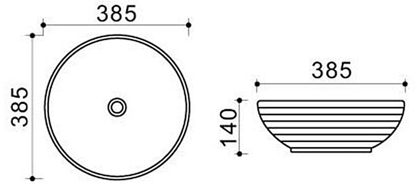 Умывальник на столешницу, ширина 385 мм, длина 385 мм, форма: круглая, фаянс/санфаянс.