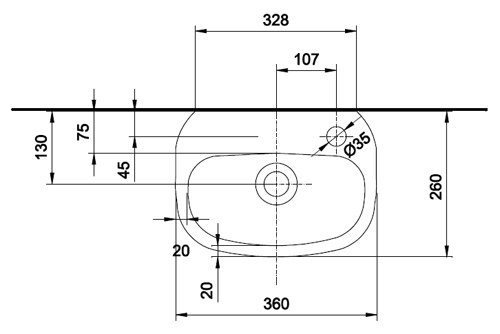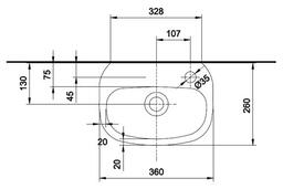 Умывальник на кронштейны, ширина 360 мм, длина 260 мм, санитарная керамика, отверстие под смеситель.