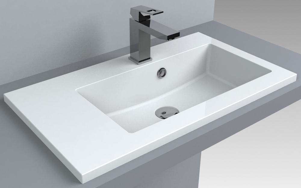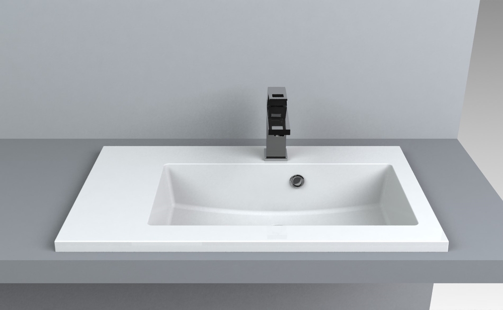 Умывальник врезной, длина 398 мм, форма: прямоугольная, искусственный мрамор, отверстие под смеситель, отверстие под перелив.