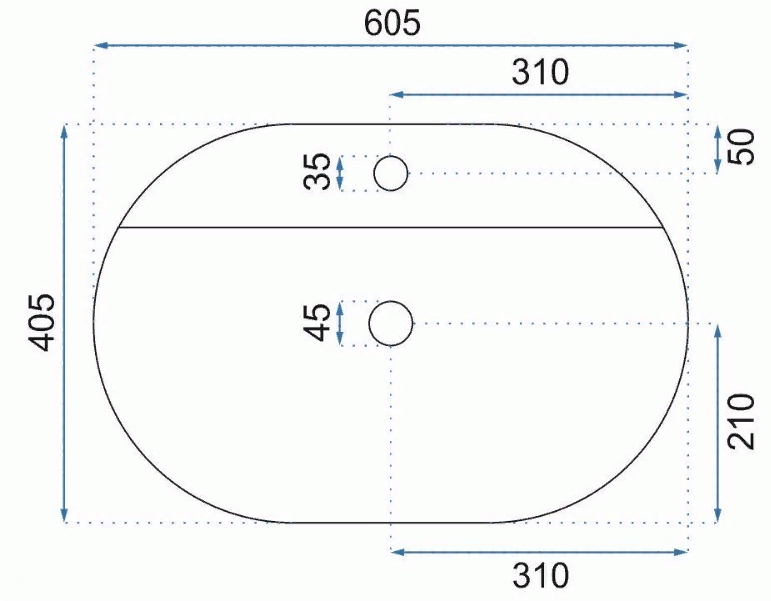 Умывальник на столешницу, ширина 605 мм, длина 405 мм, форма: овальная, санитарная керамика, отверстие под смеситель.