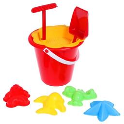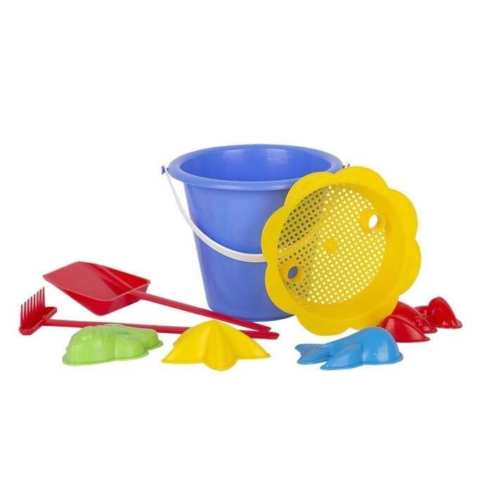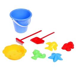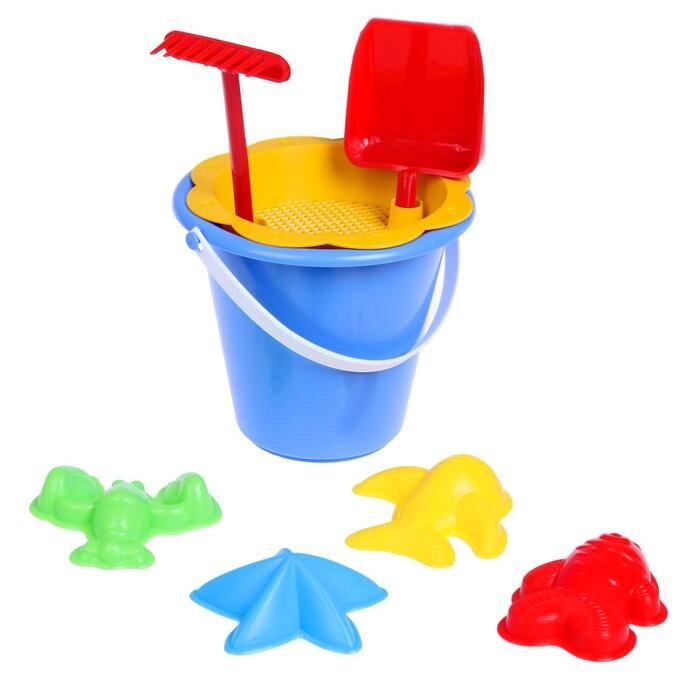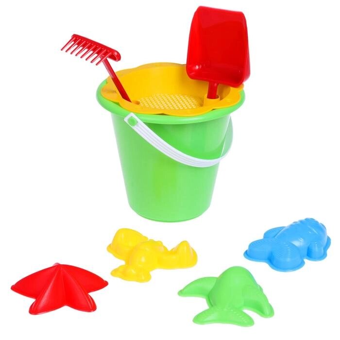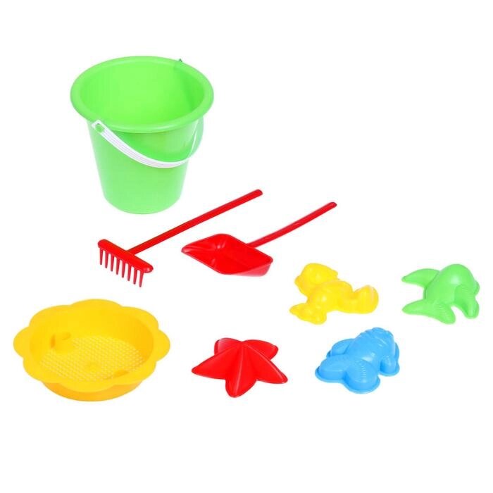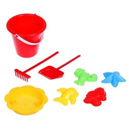 Песочный набор из 8 предметов: ведро, ситечко, совок, грабли, формочки 4 штуки