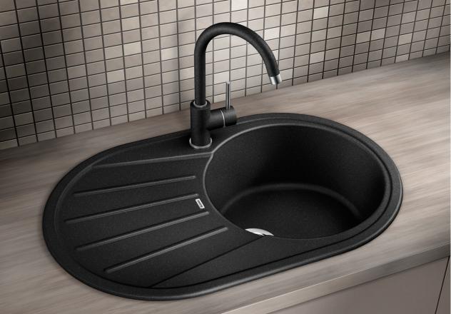 Способ установки врезная; форма овальная; материал искусст. гранит; количество чаш 1; ширина 50 см; длина (диаметр) 78 см; глубина основной чаши 18 см.