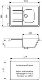 Способ установки врезная; форма прямоугольная; материал искусст. гранит; количество чаш 1; ширина 75 см; длина (диаметр) 48 см; глубина основной чаши 18,7 см.