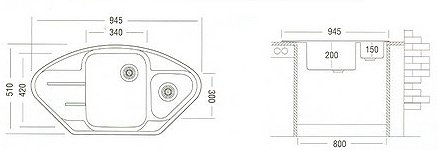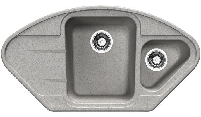 Способ установки врезная; форма оригинальная; материал искусст. гранит; количество чаш 2; ширина 94.5 см; длина (диаметр) 51 см; глубина основной чаши 20 см.