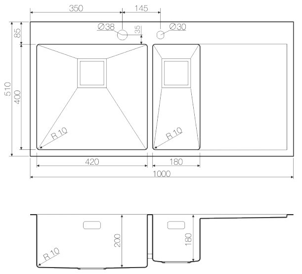 Форма прямоугольная; материал нерж. сталь; количество чаш 1.5; ширина 100 см; длина (диаметр) 51 см; глубина основной чаши 20 см.