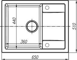 Способ установки врезная; форма прямоугольная; материал искусст. гранит; количество чаш 1; ширина 65 см; длина (диаметр) 51 см; глубина основной чаши 20 см.
