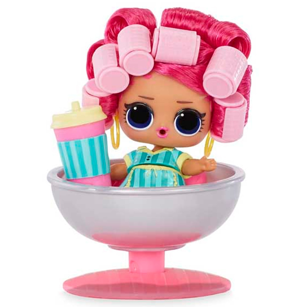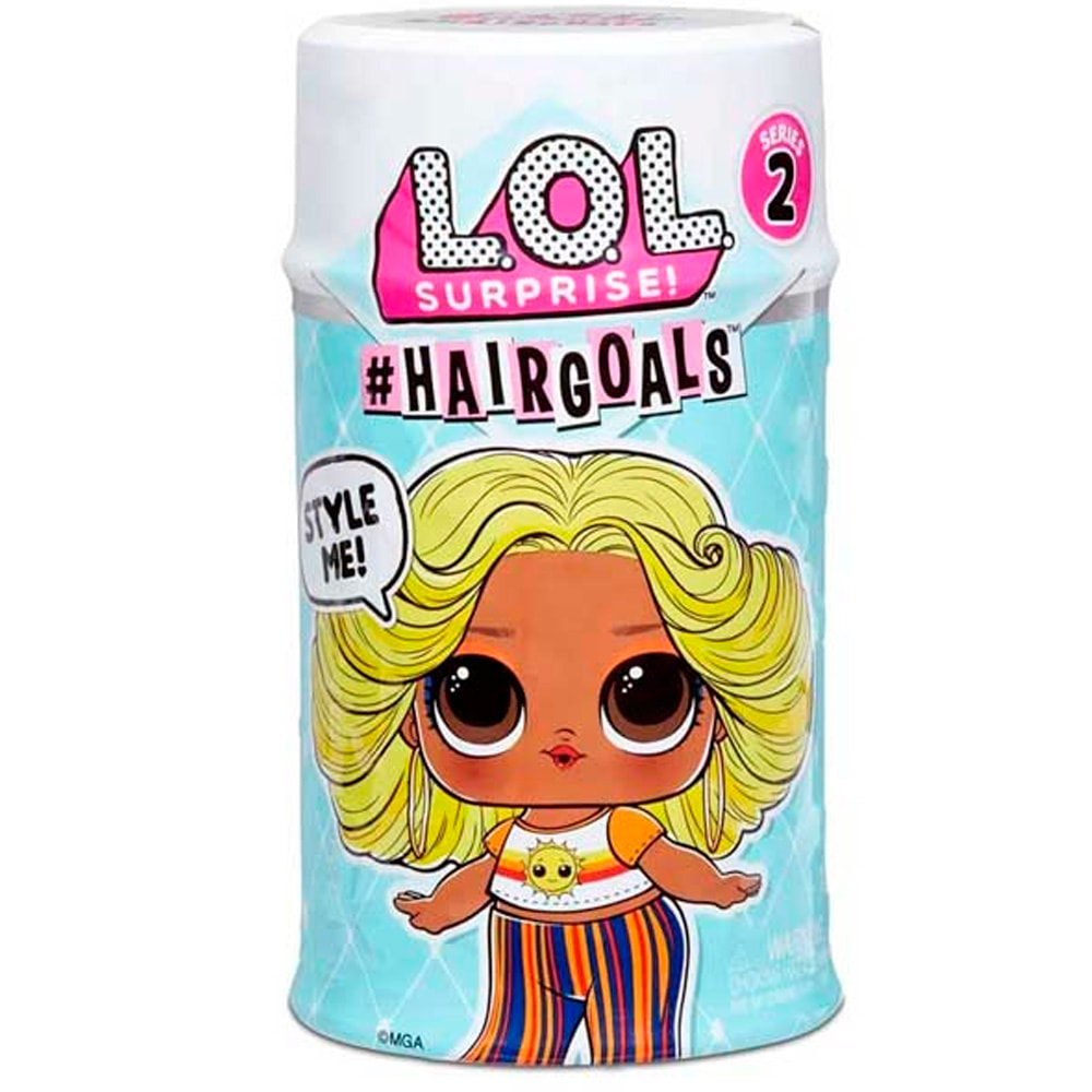 Вторая серия куколок LOL Surprise Hairgoals в капсулах, напоминающих лак для волос. На капсуле изображена куколка с прошитыми желтыми волосами каре Shine Baybay. Внутри капсулы 15 сюрпризов, в том числе бутылочка для питья, расческа, наклейки, заколки, одежда, обувь, дополнительные аксессуары. Из особенностей куколок – возможность менять цвет в теплой или холодной воде.
