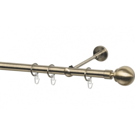 Карниз металлический однорядный ARTTEX, диаметр 20 мм, золото антик, 240 см, с наконечником Шар классический