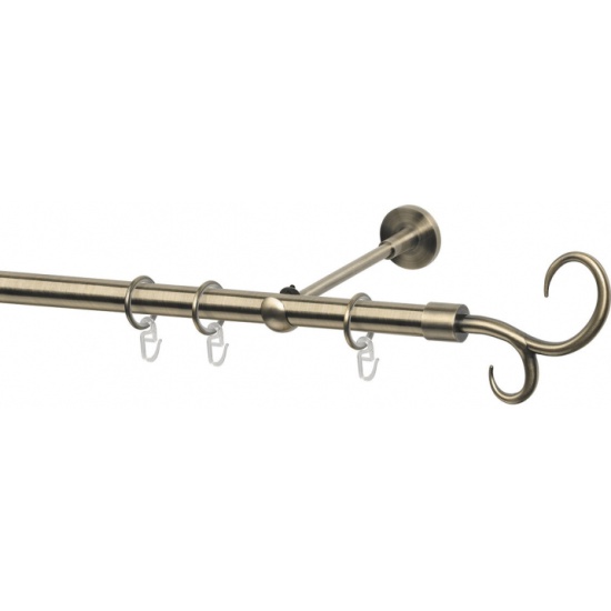 Карниз металлический однорядный ARTTEX, диаметр 20 мм, золото антик, 240 см, с наконечником Вьюнок