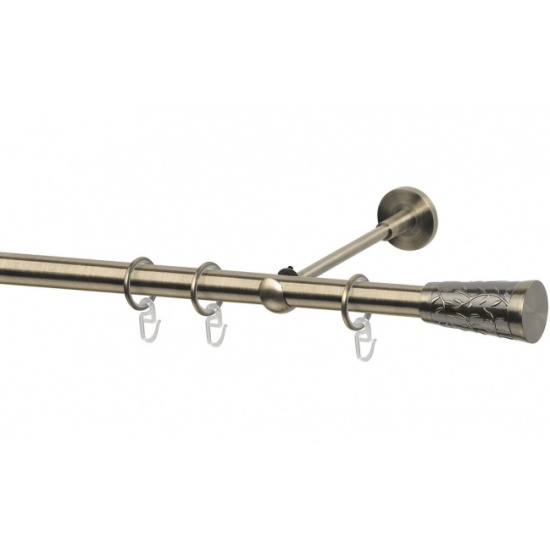 Карниз металлический однорядный ARTTEX, диаметр 20 мм, золото антик, 240 см, с наконечником Конус с орнаментом А0000016194