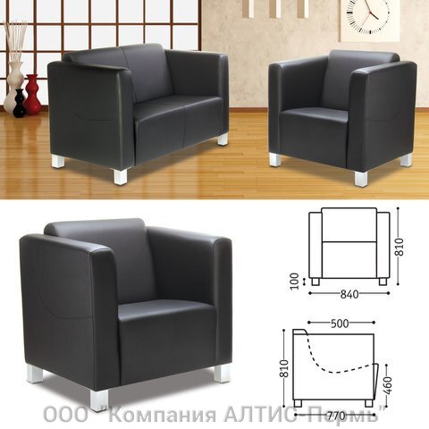 Кресло мягкое Милано, 810х840х770 мм, c подлокотниками, экокожа, черное