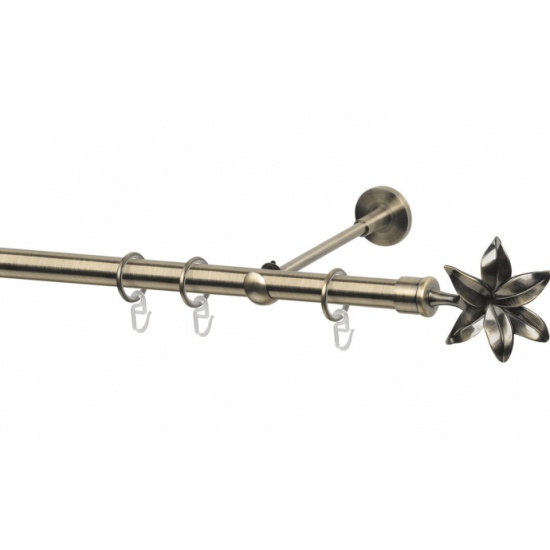 Карниз металлический однорядный ARTTEX, диаметр 20 мм, золото антик, 240 см, с наконечником Цветок