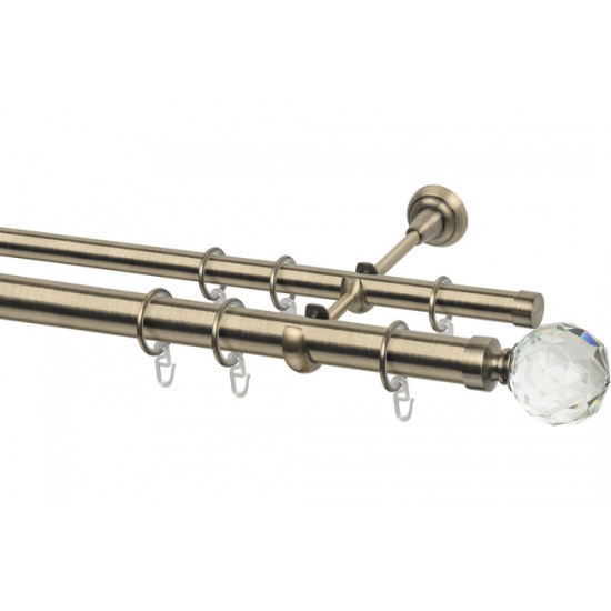 Карниз металлический двухрядный ARTTEX, диаметр 28/20, золото антик, 240 см, с наконечником Шар кристальный А0000016434