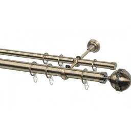 Карниз металлический двухрядный ARTTEX, диаметр 28/20, золото антик, 240 см, с наконечником Шар греческий А0000016440