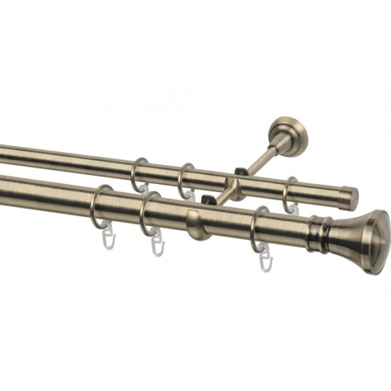 Карниз металлический двухрядный ARTTEX, диаметр 28/20, золото антик, 240 см, с наконечником Юла