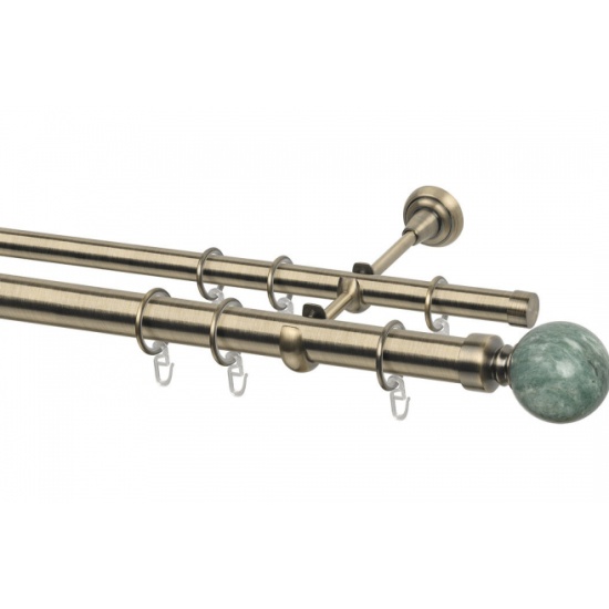 Карниз металлический двухрядный ARTTEX, диаметр 28/20, золото антик, 240 см, с наконечником Малахит