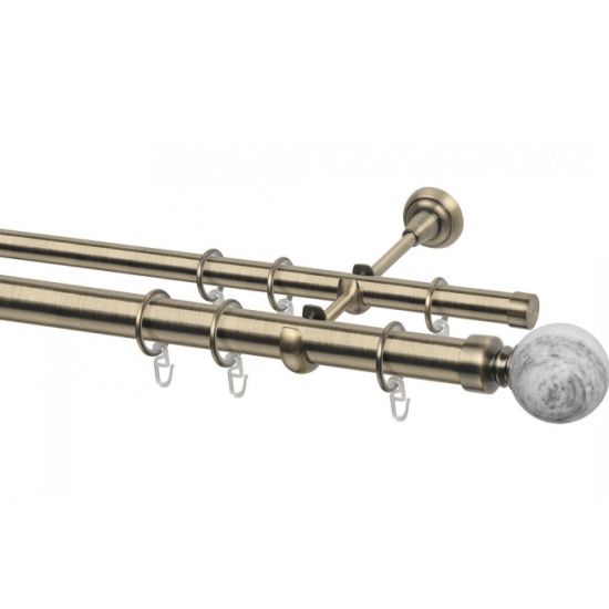 Карниз металлический двухрядный ARTTEX, диаметр 28/20, золото антик, 240 см, с наконечником Мрамор