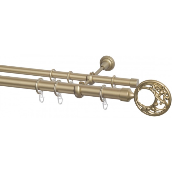 Карниз металлический двухрядный ARTTEX, диаметр 28/20, бронза, 240 см, с наконечником Круг античный
