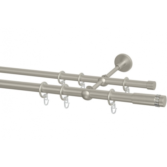 Карниз металлический двухрядный ARTTEX, диаметр 20/16, сталь, 160 см, с наконечником Цилиндр со стразами