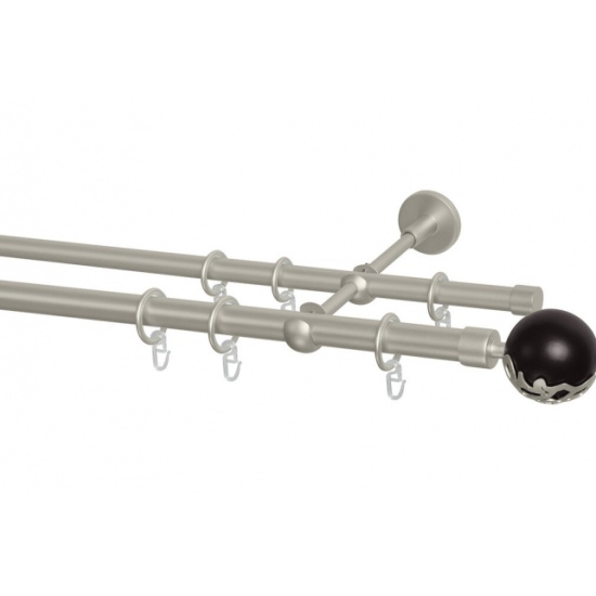Карниз металлический двухрядный ARTTEX, диаметр 20/16, сталь, 240 см, с наконечником Шар в оправе
