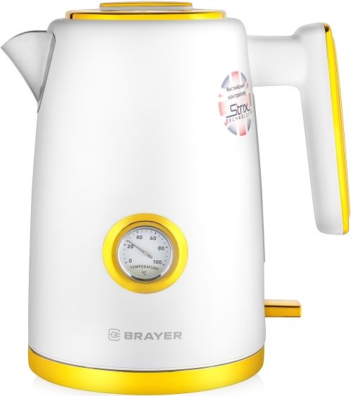 Электрический чайник, мощность 2200 Вт, объем 1.7 л, материал корпуса нерж. сталь, нагревательный элемент закрытая спираль, дополнительные функции: индикация включения, индикация температуры, подставка с вращением на 360°.