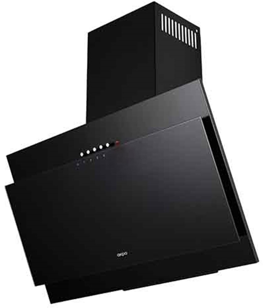 Настенная, наклонная кухонная вытяжка, ширина 60 см, тип очистки воздуха: отвод, количество скоростей 3, макс производительность 1100 м3/ч, кнопочное управление, дополнительные функции: антивозвратный клапан, периметральное воздухопоглощение, металлический жироулавливающий фильтр, макс уровень шума 70 дБ.