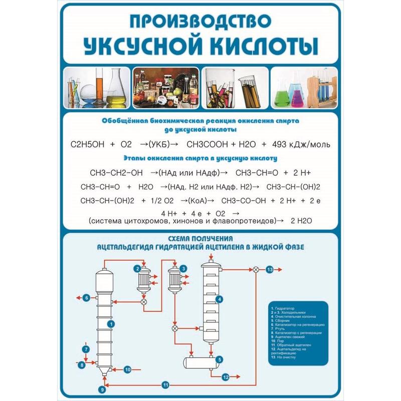Плакат-таблица Statuya по химии Производство уксусной кислоты (700x1000 мм)