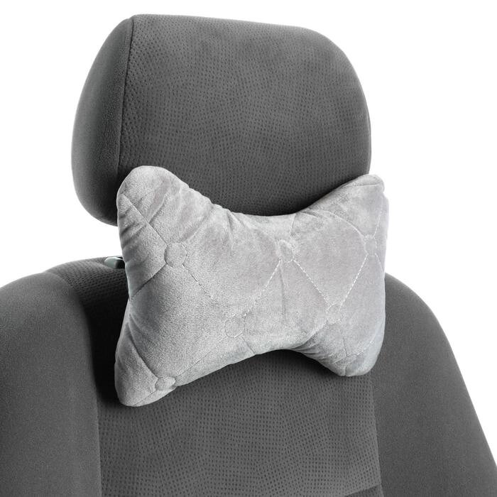 Подушка автомобильная для шеи 2818 см, велюр, серый