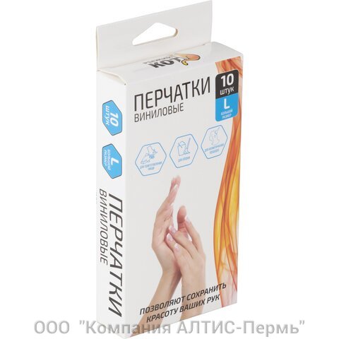 Перчатки виниловые КОМПЛЕКТ 5 пар (10 шт.) неопудренные, размер L, белые, 008342