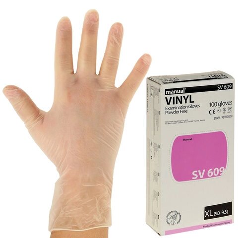 Перчатки медицинские Manual виниловые MANUAL SV609, SV609-04, КОМПЛЕКТ 50 пар (100 шт. неопудренные, нестерильные 630057
