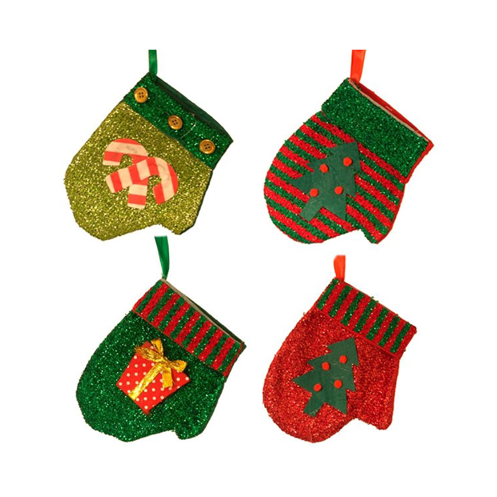 Изделие декоративное новогоднее "Варежка для подарков"изготовлено из текстиля, представлено в 4-х вариантах, упаковано в пакет