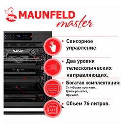 Электрический духовой шкаф MAUNFELD EOEH.7611SCSB выполнен в цвете черная нержавеющая сталь. Благодаря этому вы можете разместить устройство на своей кухне и наслаждаться соответствием дизайна шкафа интерьеру помещения. У данной модели есть сенсорные переключатели, которые позволяют легко и быстро управлять прибором. Удобная традиционная очистка помогает справляться с загрязнениями и продолжать эксплуатировать духовой шкаф с комфортом. Объем данной духовки составляет 76 л, а это значит, что вы можете приготовить оптимальное количество порций.