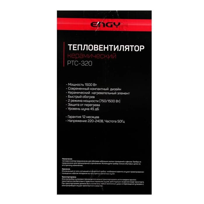 Тепловентилятор ENGY РТС-320, керамический, напольный, 1500 Вт, 2 режима, черный