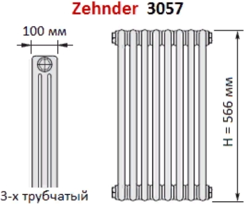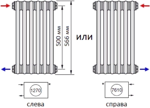 Стальной радиатор, трубчатый, межосевое расстояние 500 мм, подводка теплоносителя боковая, тепловая мощность 1947 Вт.