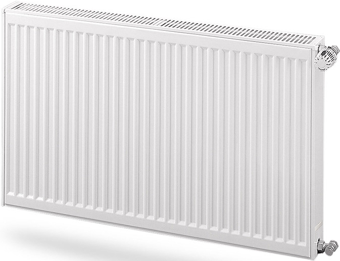 Стальной радиатор, панельный, межосевое расстояние 250 мм, подводка теплоносителя боковая, тепловая мощность 381 Вт.