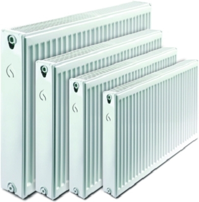 Стальной радиатор, панельный, межосевое расстояние 850 мм, подводка теплоносителя боковая, тепловая мощность 1433 Вт.