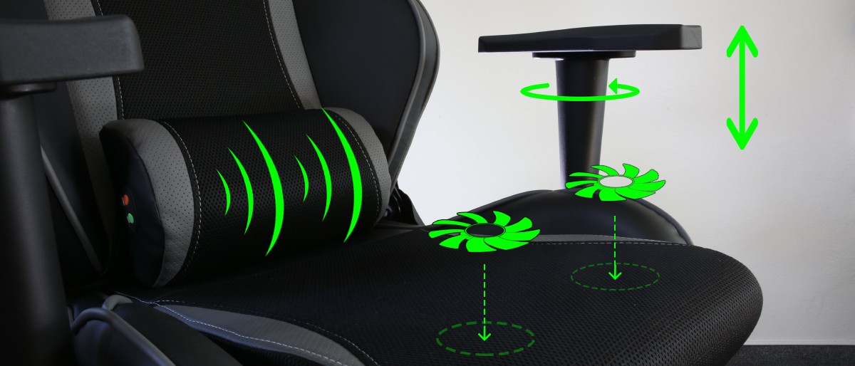 • Регулировки наклона спинки / 180 градусов /степени жесткости качанияподдержка поясницы / съемная подушка /высоты сиденьявысоты подлокотниковподлокотников по горизонтали
