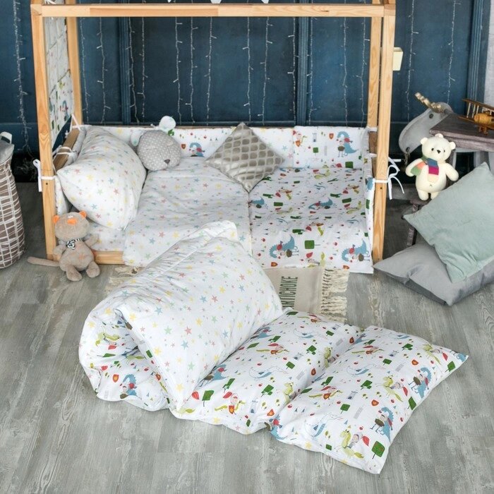 Матрасик с подушками 'Рыцари' двусторонний 70x190 см, бязь/спанбонд