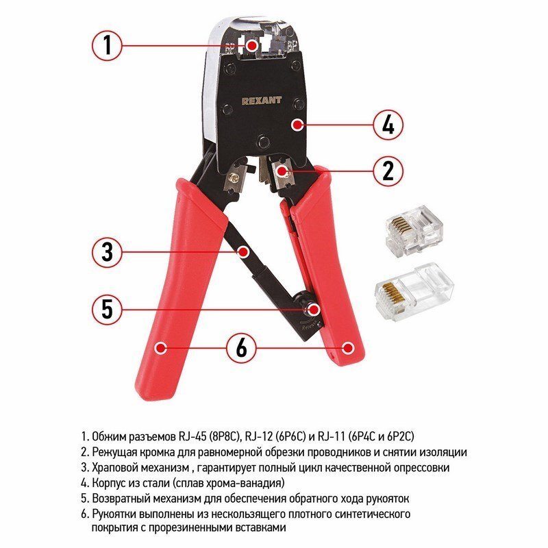 Кримпер для обжима 8P8c / 6P4c (ht-500R) тайвань, rexant, 12-3434-1 78140