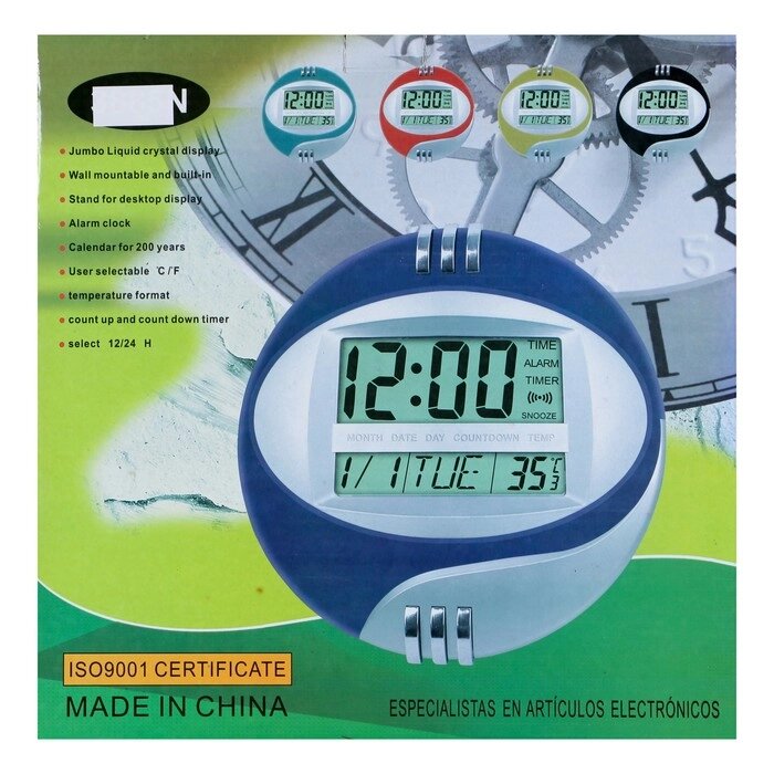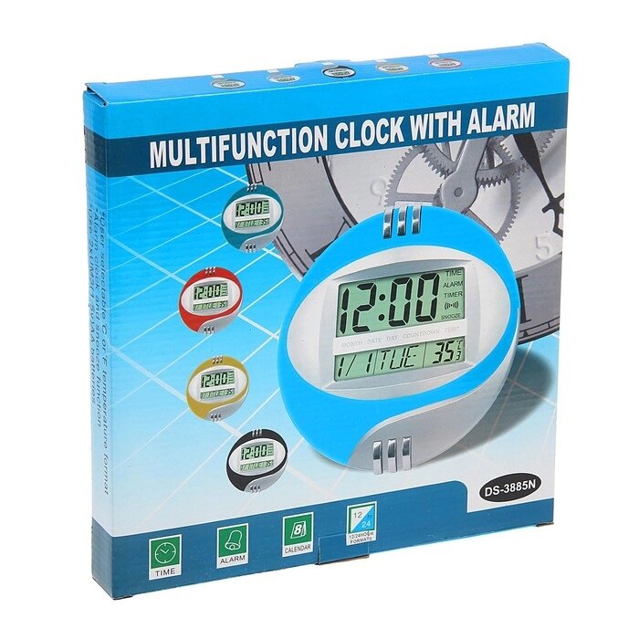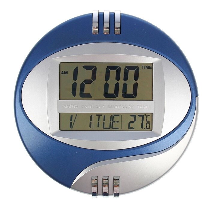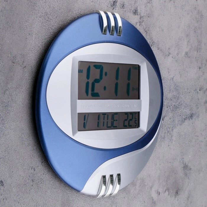 Часы настенные электронные с календарем, таймером и термометром, 26 х 26 см, синие