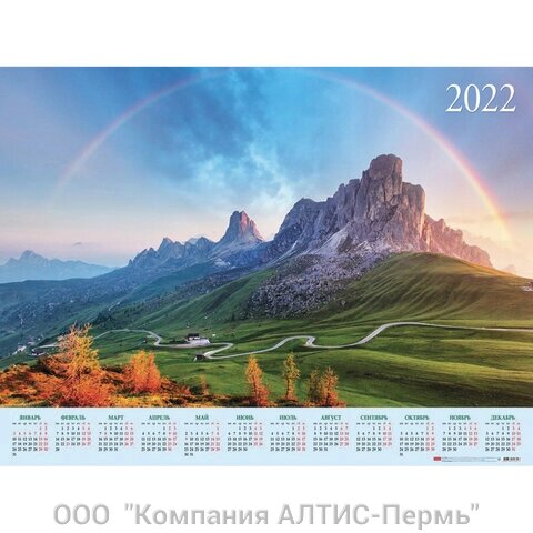 Календарь настенный листовой, 2022 г., формат А1 90х60 см, Горные вершины, HATBER, Кл1_2