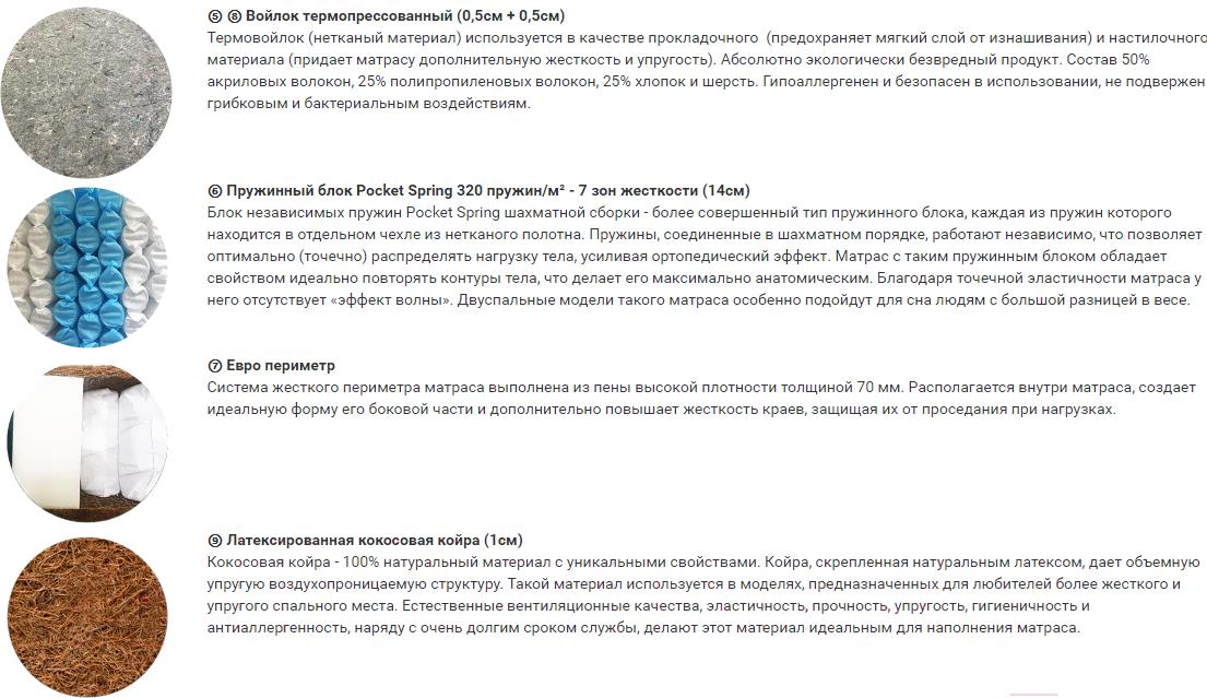 • Плотность пружин (шт/м²) 320
