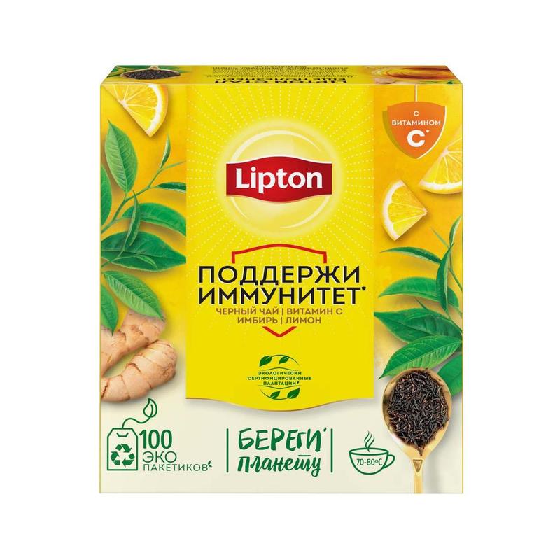 Чай Lipton черный с имбирем и лимоном 100 пакетиков