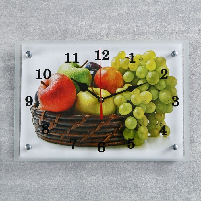 Часы настенные, серия: Кухня, "Корзина с фруктами", 25х35 см, микс